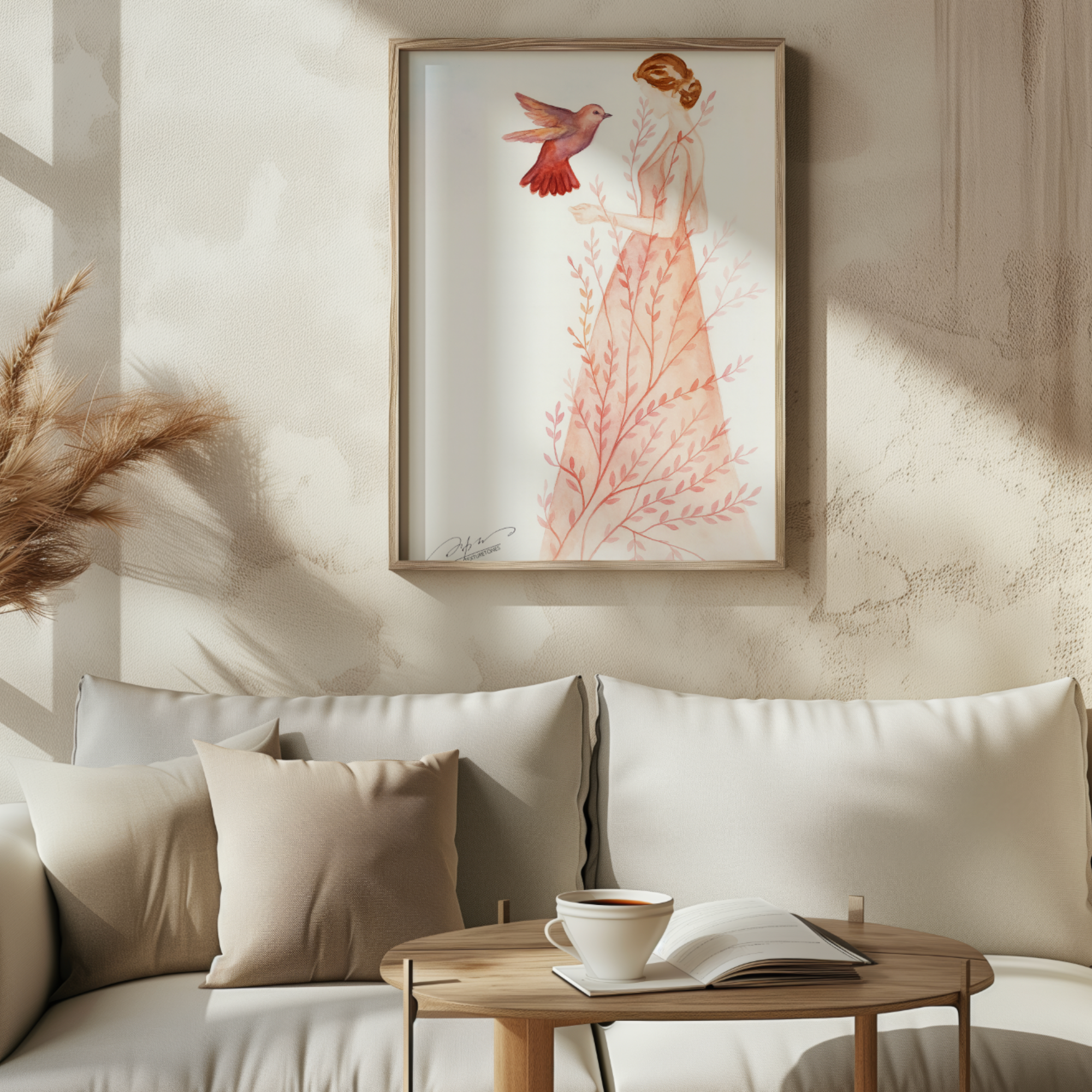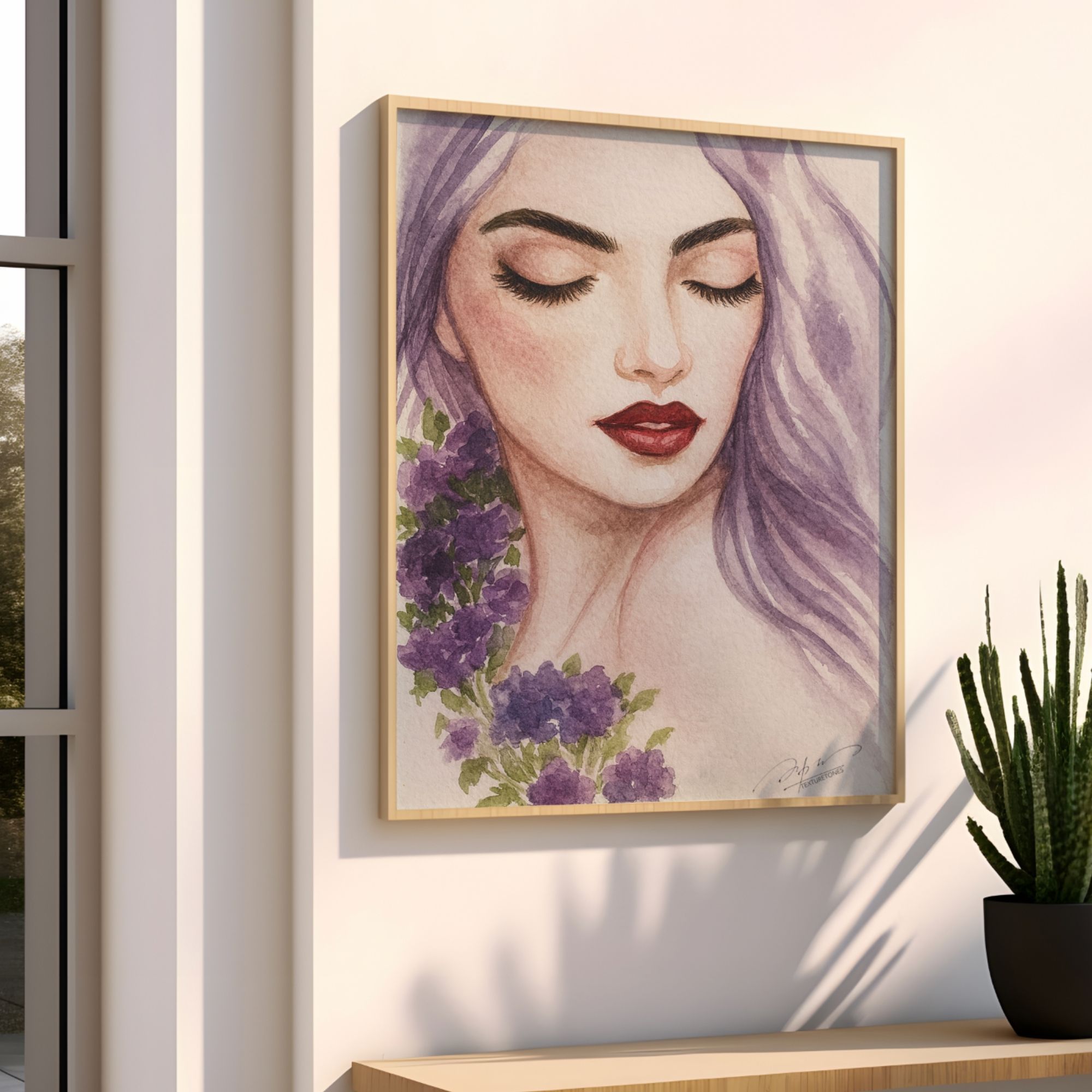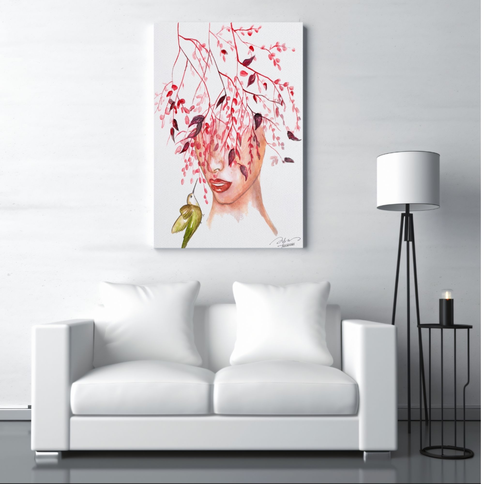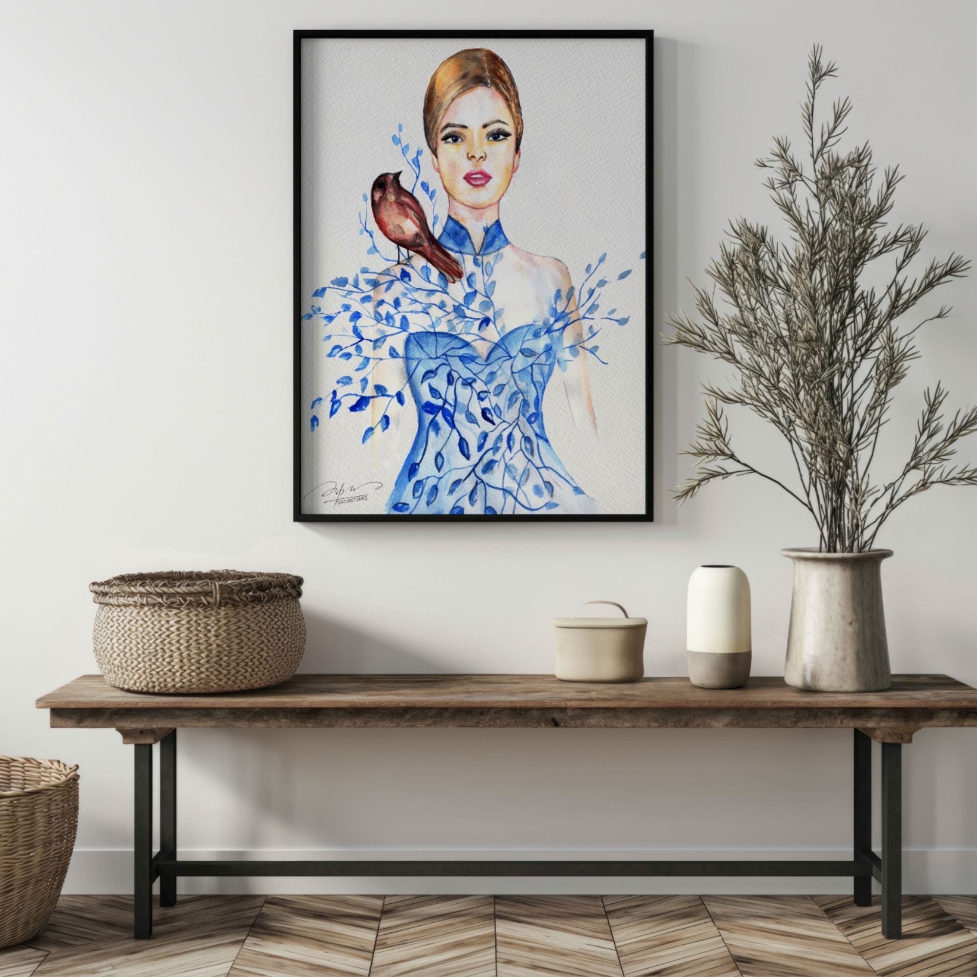 This section features original paintings, art prints and illustrations, including watercolor paintings, digital art, and fashion-inspired artwork available for prints and licensing.