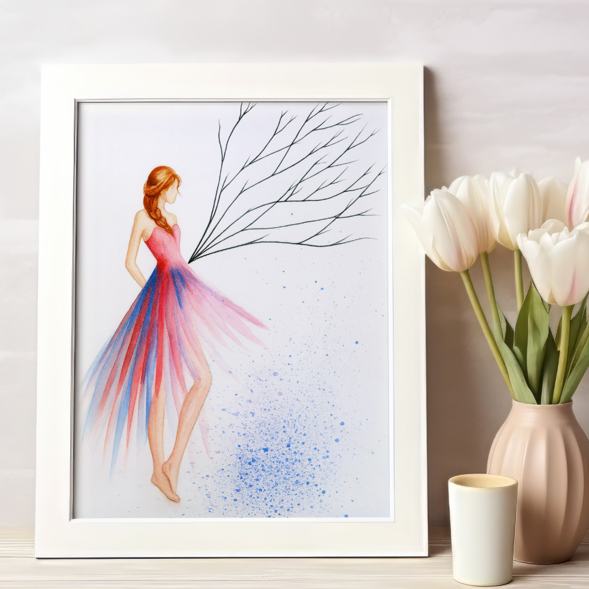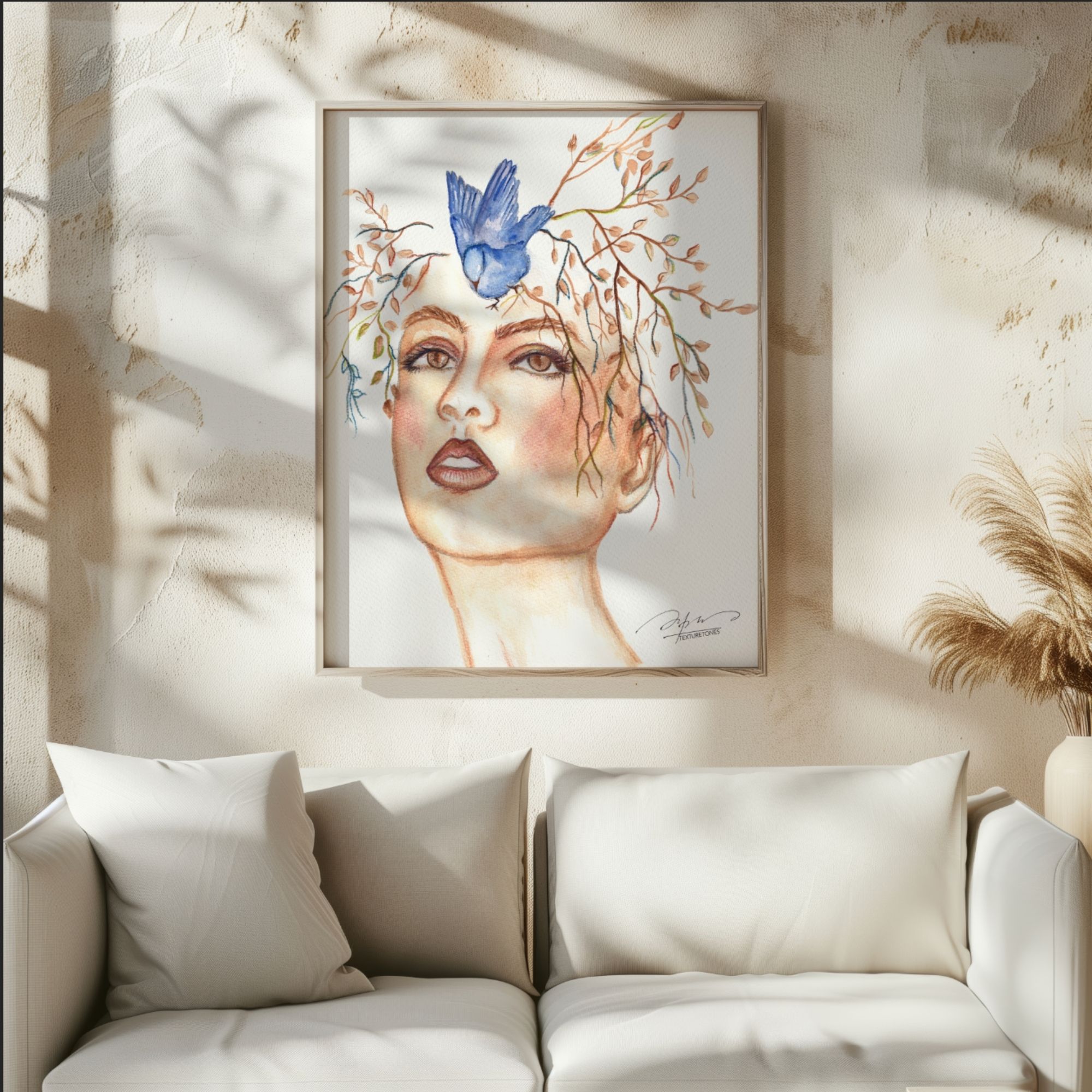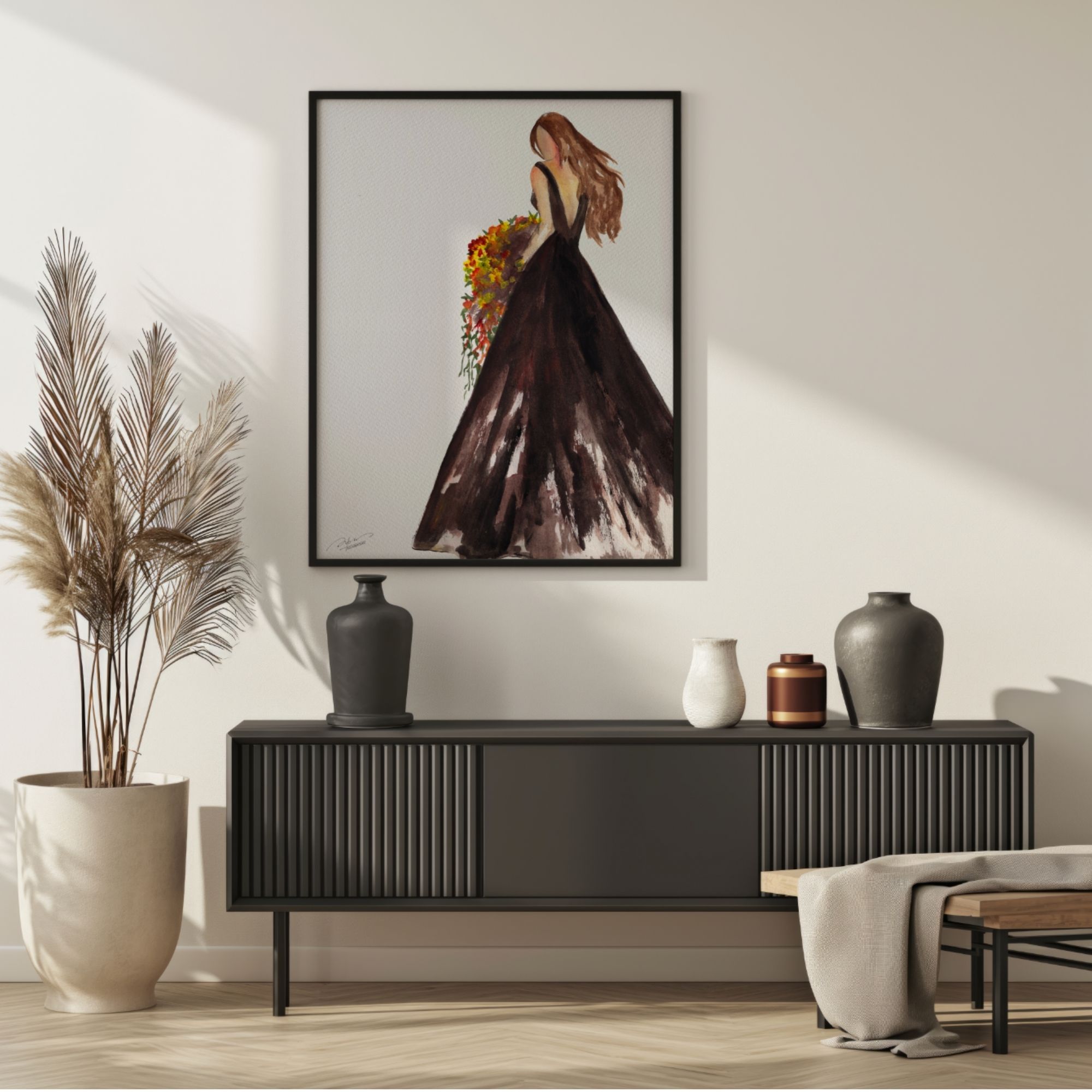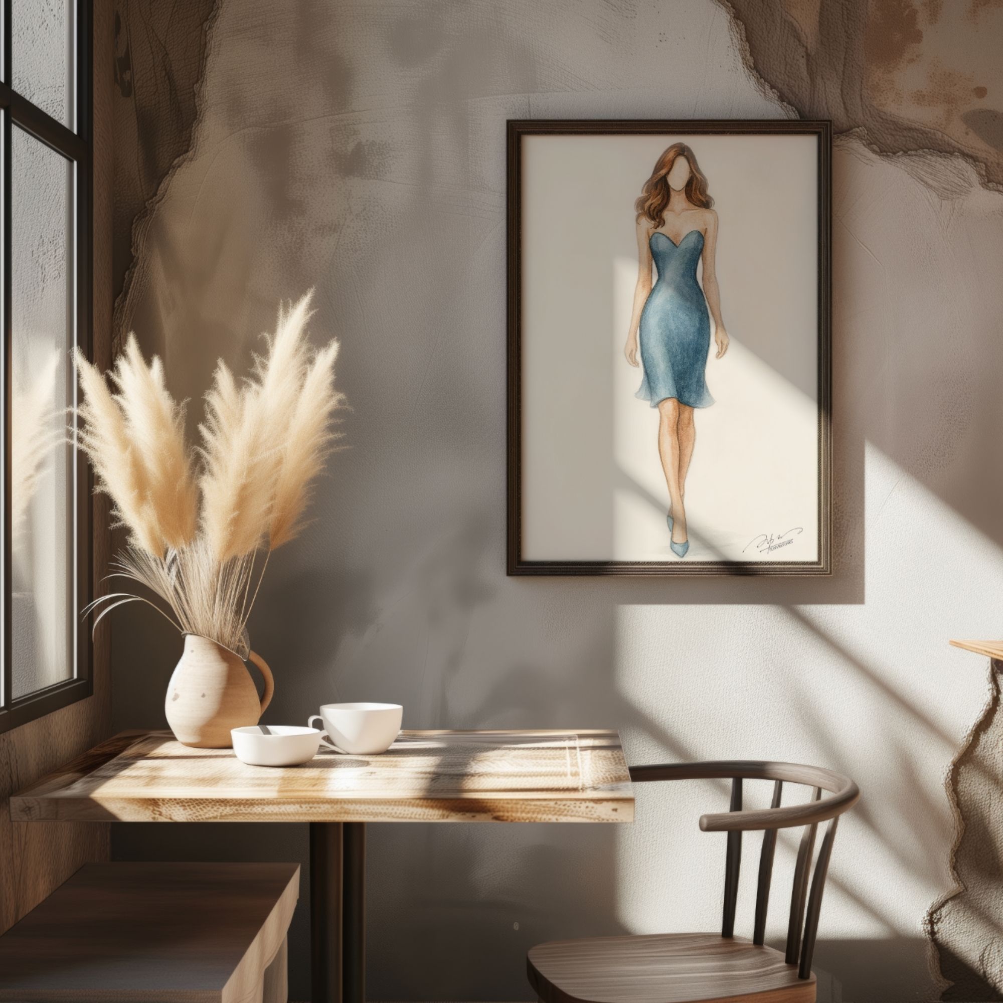 This section features original paintings, art prints and illustrations, including watercolor paintings, digital art, and fashion-inspired artwork available for prints and licensing.
