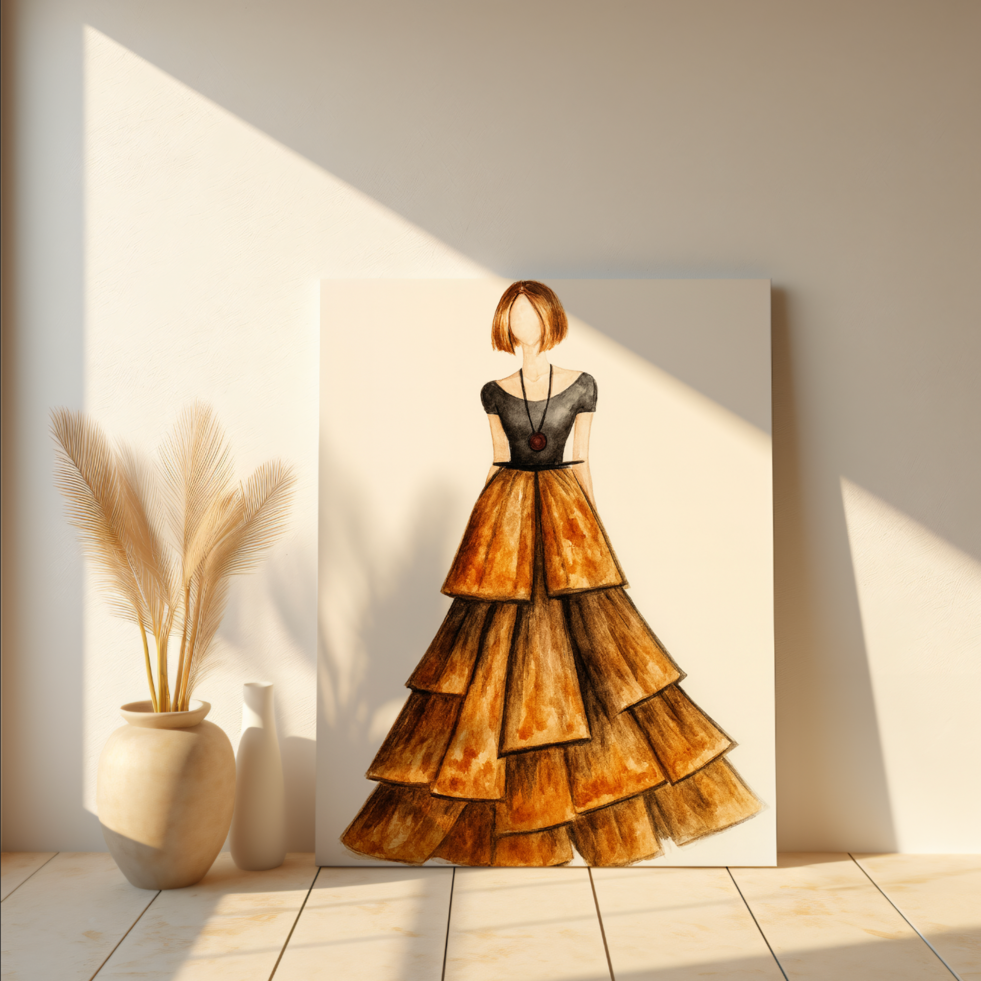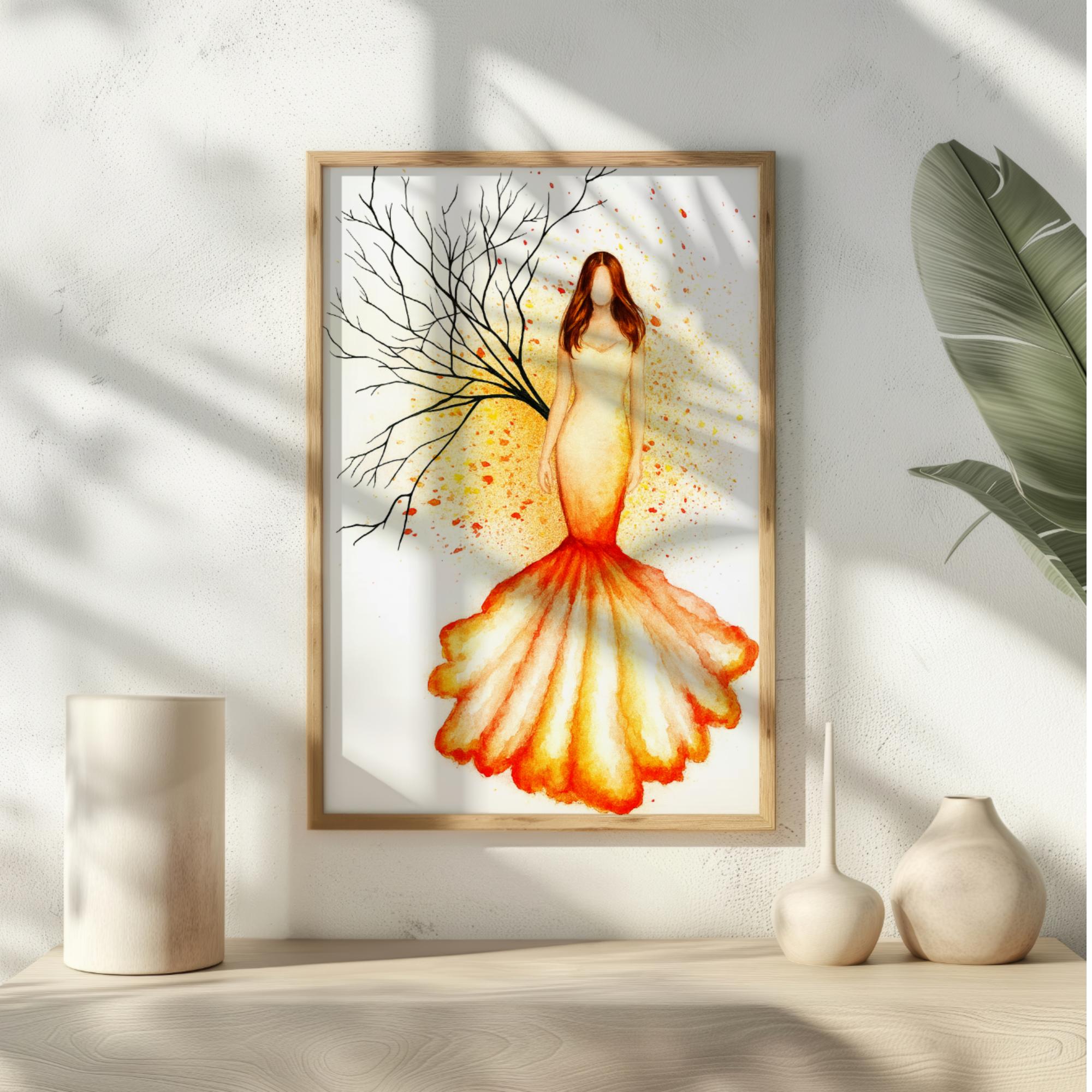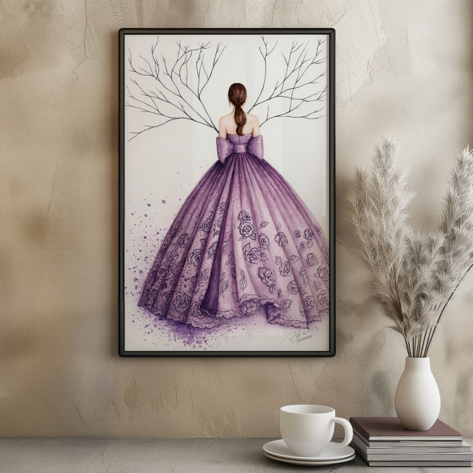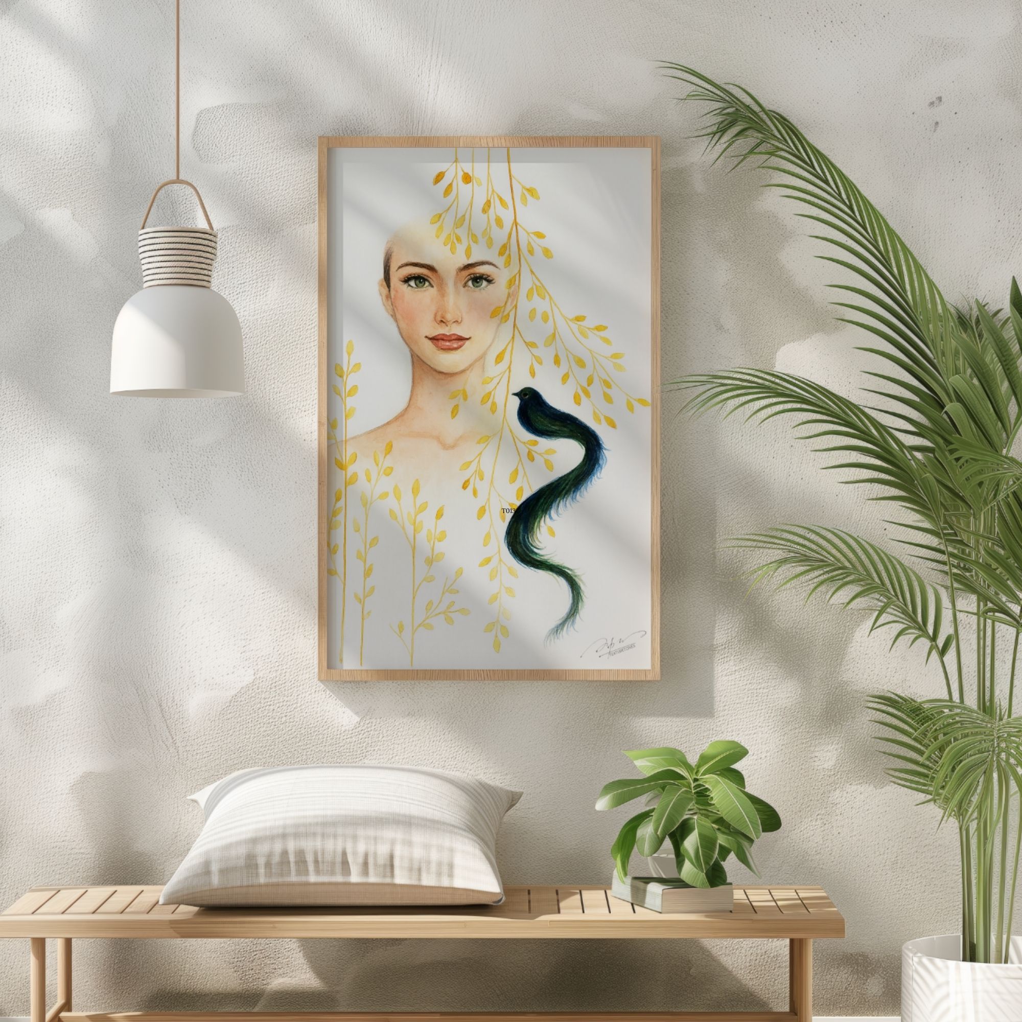 This section features original paintings, art prints and illustrations, including watercolor paintings, digital art, and fashion-inspired artwork available for prints and licensing.